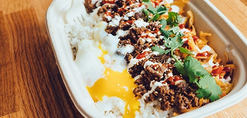 Back in the District at Union Market (1309 5th St. NE), TaKorean also unpacks sous vide spins on Asian eats. Tacos and bowls of Korean–Latin American fusion are often topped with perfect sous vide eggs—they’re soft yet solid, from yolk to white. “A poached egg is not only more time consuming to make, but the egg white is more firm than a sous vide egg,” says creative director Nicole Shearer. She recommends ordering Steak & Eggs, a favorite in the TaKorean kitchen that includes half white rice and half pickled cabbage slaw, bulgogi, lime crema, and “gochu-pow” (a house-made hot sauce). Chefs finish the bowl with cilantro, sesame seeds, and the sous vide egg.